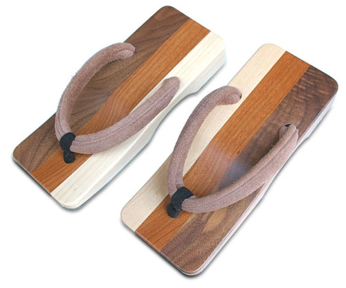 天然のタモ・ブラックチェリー・ウォールナットを張り合わせたグラデーション下駄。