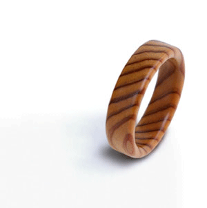 丁寧に作られた杉の指輪。美しい年輪模様と優しい付け心地が